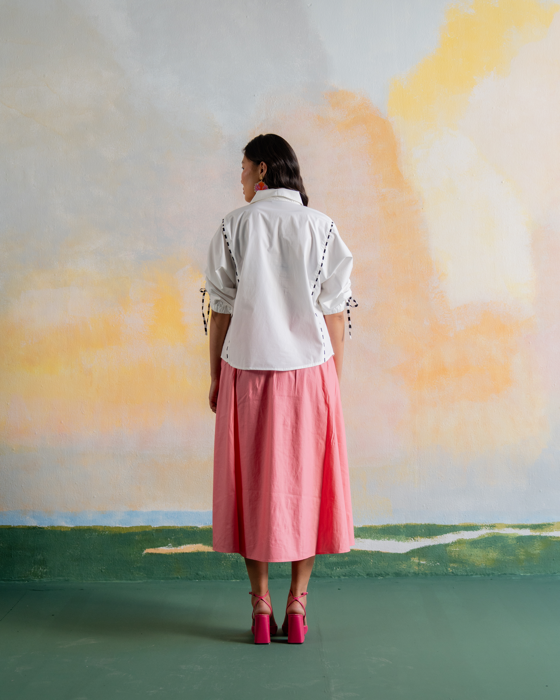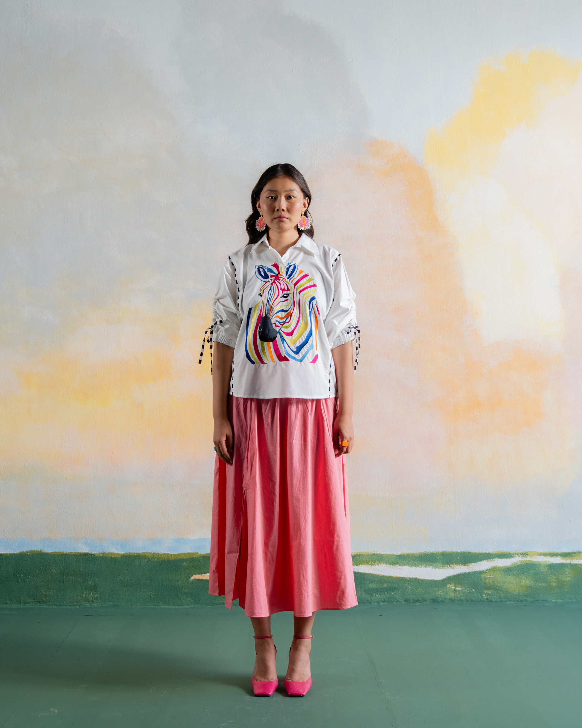 Let your wild side shine with the Technicolor Zebra Shirt. Showcasing a bold, multicolored zebra motif and playful drawstring sleeve details, this crisp white cotton shirt is a standout piece made for the creatively styled.